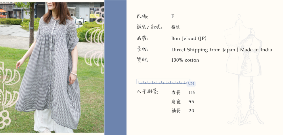 {印度棉}全棉薄紗格仔褶皺連身裙