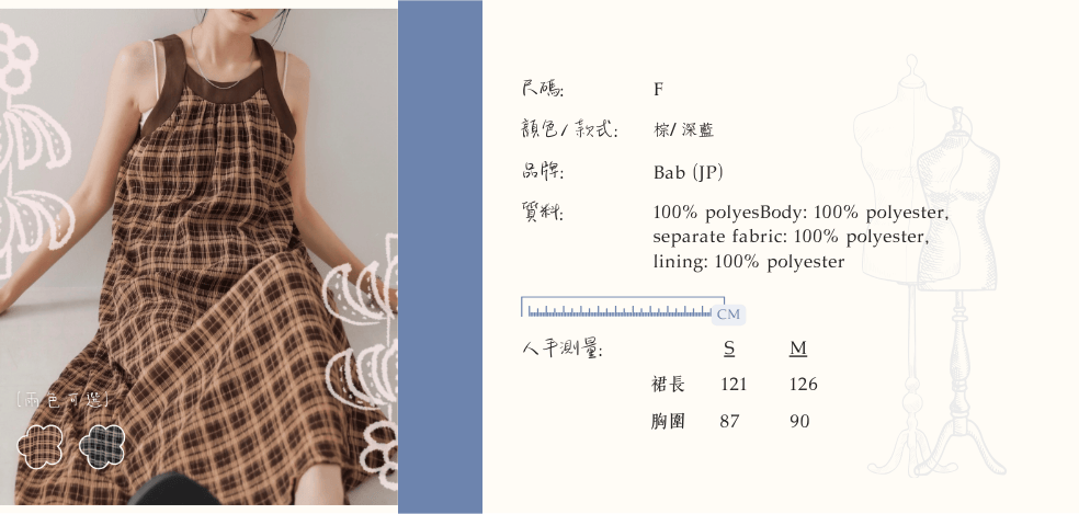 Bab|高貴淡雅 格紋背心連身裙【2色入】