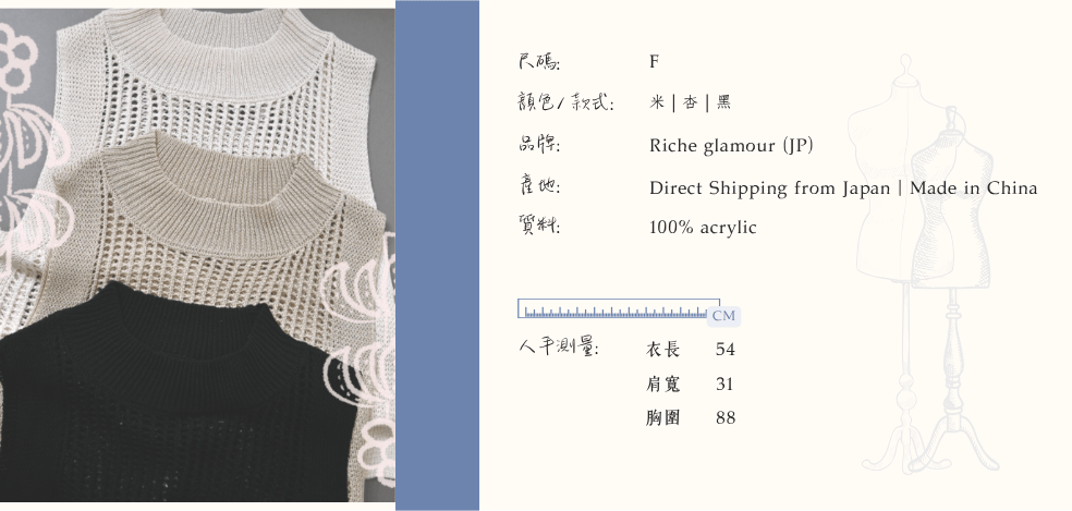 修身針織透網背心【3色入】