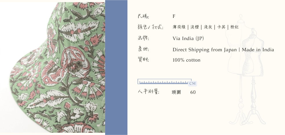 {印度製} 全棉 Block Print 印花漁夫帽【多色入】