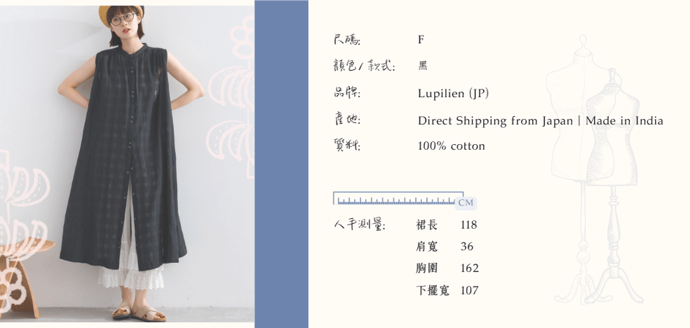 {印度製} 高級棉薄紗格紋無袖連身裙