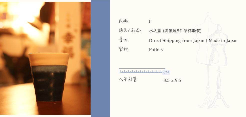 {日本製} 水之藍 美濃燒茶杯5件裝