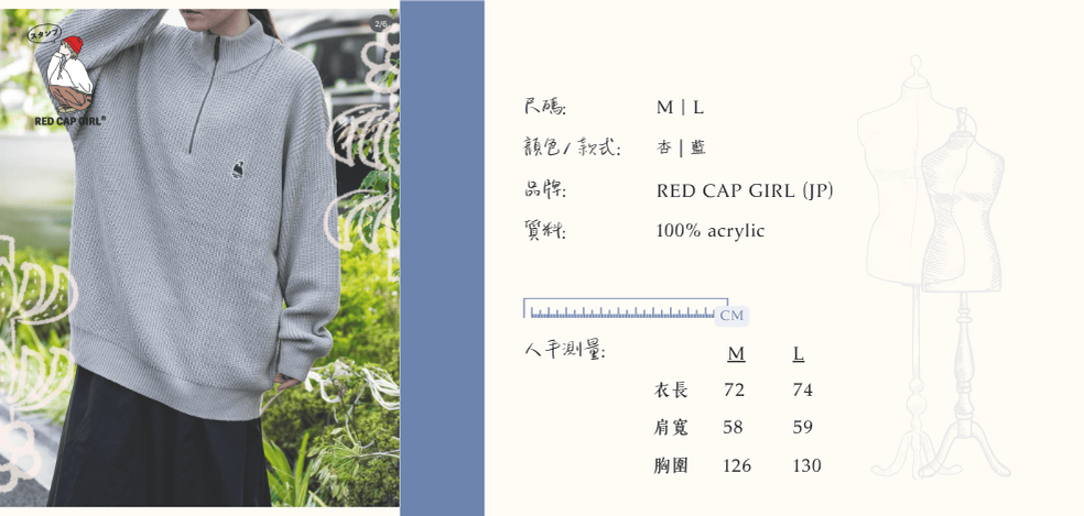 RED CAP GIRL 針織拉鏈領長袖上衣【2色入】