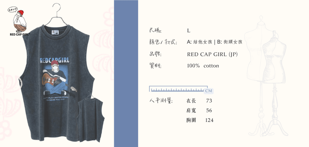 RED CAP GIRL 印花洗水黑色背心【2款入】