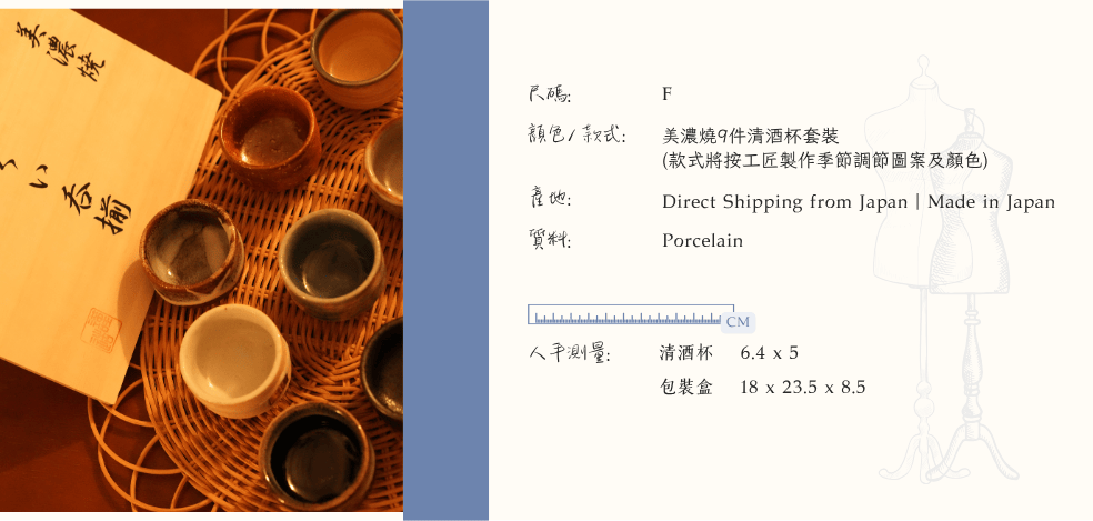 精選美濃燒清酒杯禮品套裝 (9件裝|連木盒)